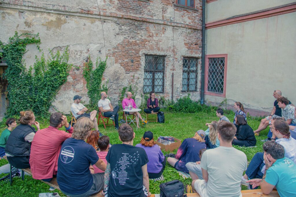 Velmi silnou součástí programu byl i den věnovaný vizím dobrého života. Nejen že jsme vize artikulovali, ale i žili – například při nerůstové hostině, která v praxi zhmotnila ideál konviviality – tedy kvality vztahů, sdílení a radosti z bytí spolu a z péče o společný svět.